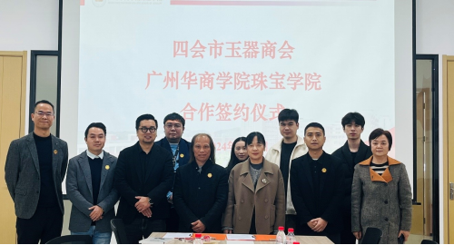 珠宝学院和四会市玉器商会于3月7日在华商学院肇庆校区正式签署战略合作协议。(朱晓红院长向四会市玉器商会赠书) (廖会长与朱院长签署玉器商会与珠宝学院合作协议)签约仪式上,珠宝学院朱晓红院长对廖锦文会长一行莅临华商珠宝学院表示热烈欢迎,对双方强烈的合作愿望予以高度评价,认为共同的目标就是为业界做事,实现业界优势和学界优势的联合,共同服务当地经济发展。廖锦文会长表示,四会市是中国著名的玉器之乡,是中国...
