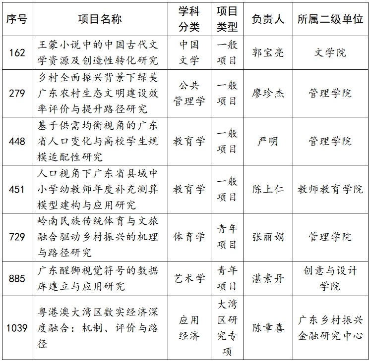 4月25日,广东省社会科学界联合会对广东省哲学社会科学规划2025年度常规项目、三类研究专项拟立项名单予以公示,共1109项予以公示,我们有7项位列其中,名单如下: