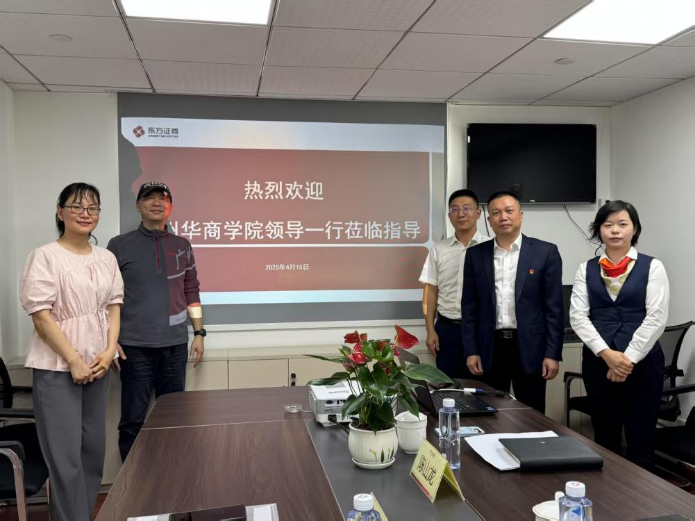 2025年4月15日,数字金融学院院长助理钟坚毅副教授、金融系系主任卢敏副教授前往我们实习基地——东方证券广州宝岗大道证券营业部开展交流研讨。此次交流活动旨在进一步加强校企合作,推动实习基地建设,深化产教融合,探索数智金融人才培养新模式。