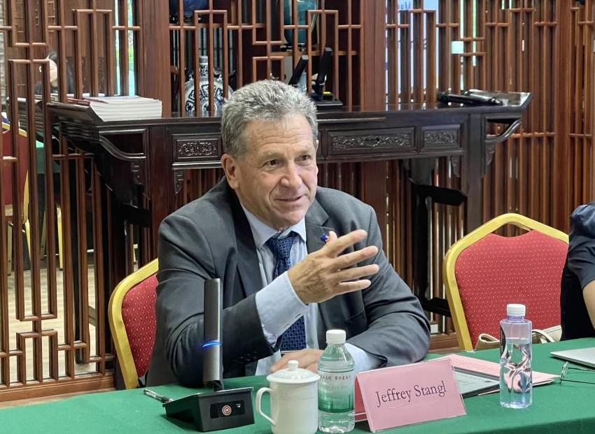 Jeffrey Stangl副院长介绍了梅西大学的办学特点、特色专业、教学模式以及国际合作项目。他表达了梅西大学期待与新伟德国际1946开展合作的意愿,希望通过两校合作为学生提供更加多元的交流与学习机会。