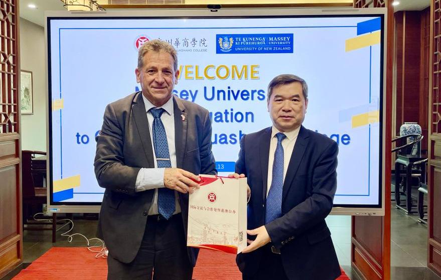 5月13日,新西兰梅西大学国际与战略总监、商学院副院长Jeffrey Stangl及随行人员到访新伟德国际1946。学校副校长焦方太、管理学院院长史传林、国际交流与合作处处长王文忠、副处长熊子珂等热情接待来访代表。