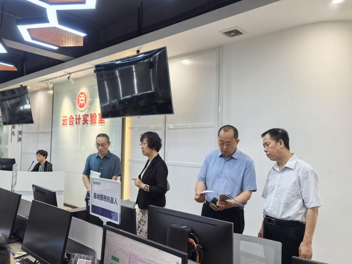 会前,李雪院长一行参观了我们经管类跨专业综合仿真实习平台、金融科技实验平台、大传播实验平台及数智会计与商务服务产业学院。