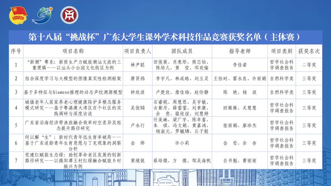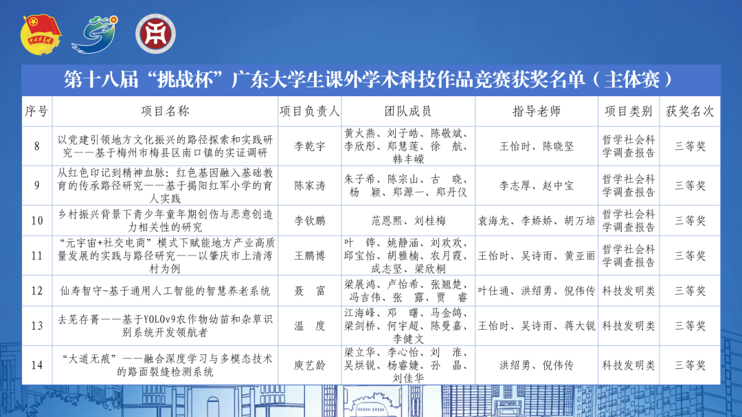经过激烈角逐,全省共评选特等奖178项、一等奖272项、二等奖451项,覆盖自然科学、社科调研、科技发明三大领域。我们共有17支队伍获奖,其中主体赛1支队伍获二等奖,13支队伍获三等奖,专项赛3支队伍获三等奖。我们参赛团队以创新方案服务地方需求,展现了青年扎根大地、敢闯敢创的担当。赛事不仅为城乡发展留下“青春印记”,更以“科技+实践”的双向奔赴,书写了“强国一代”的使命答卷。