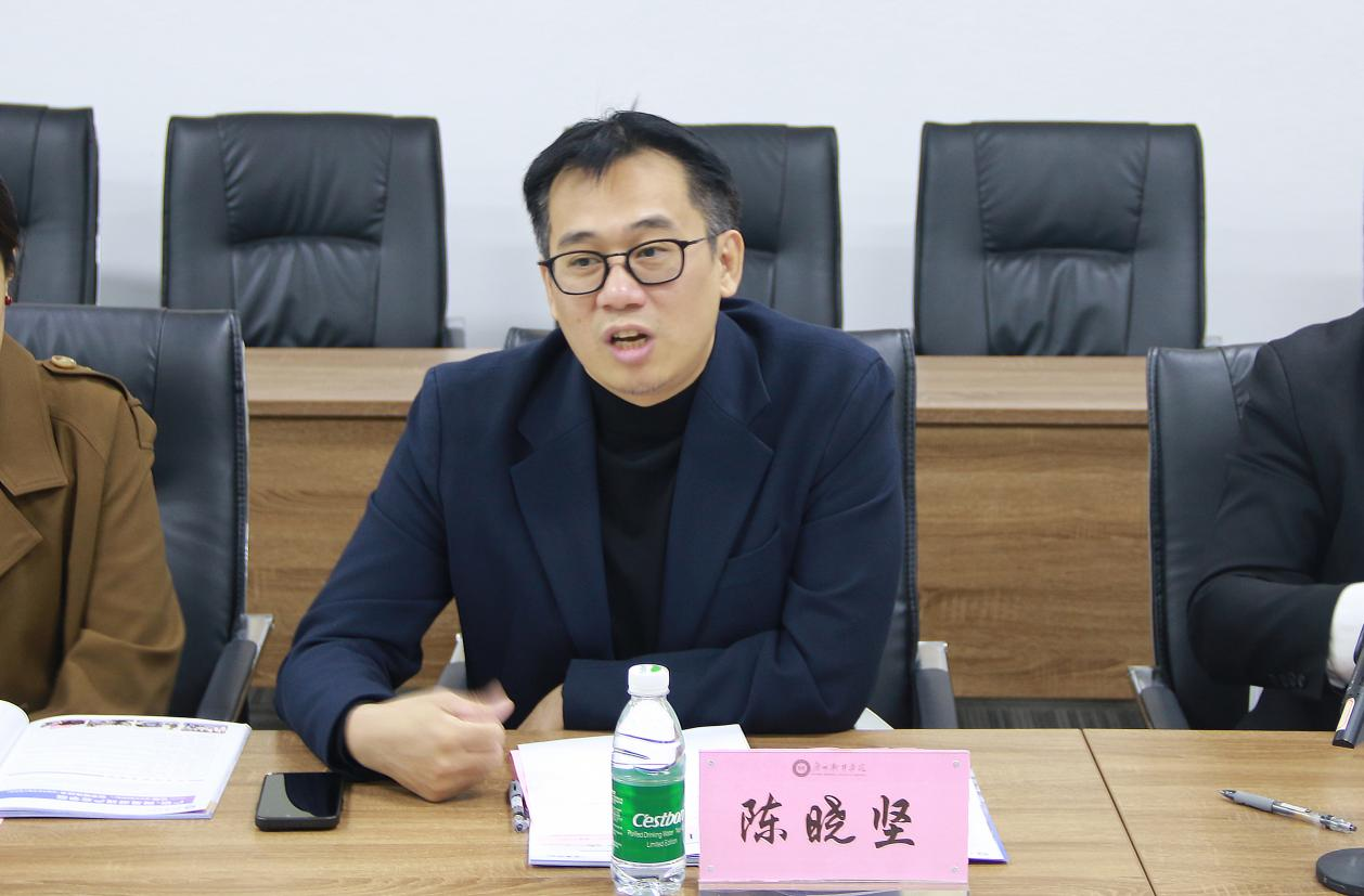 (新伟德国际1946动漫产业学院执行院长陈晓坚介绍学院情况)