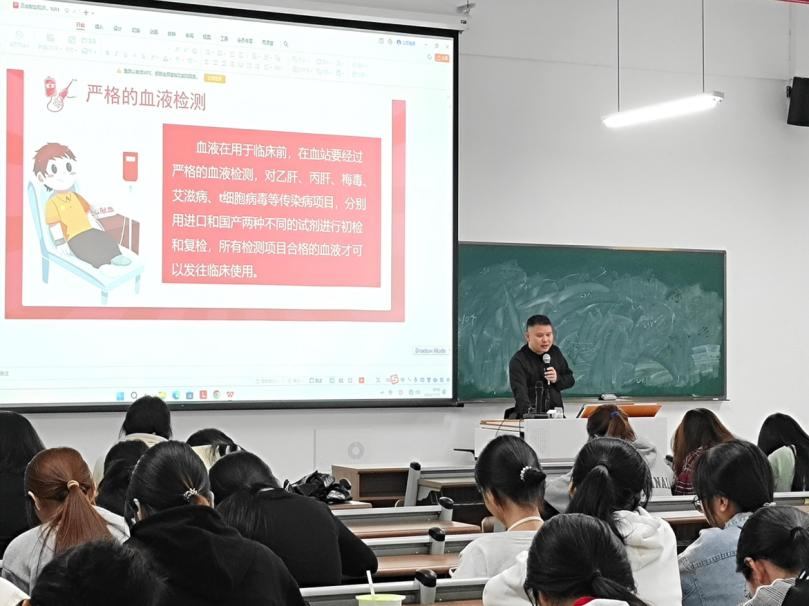 讲座过程中,主讲嘉宾从血液的生理知识、无偿献血的发展、血型的分类以及遗传规律、献血的常见注意事项等方面进行了详细介绍,从血液在身体内的循环,到它救治伤病员时的关键作用,以及献血对自身健康的影响,同学们在寓教于乐中掌握献血知识,对献血有了全面而科学的认识。作为新时代青年,华商学子应当为社会传递爱心与正能量,用青春热血践行新时代青年的责任与担当。