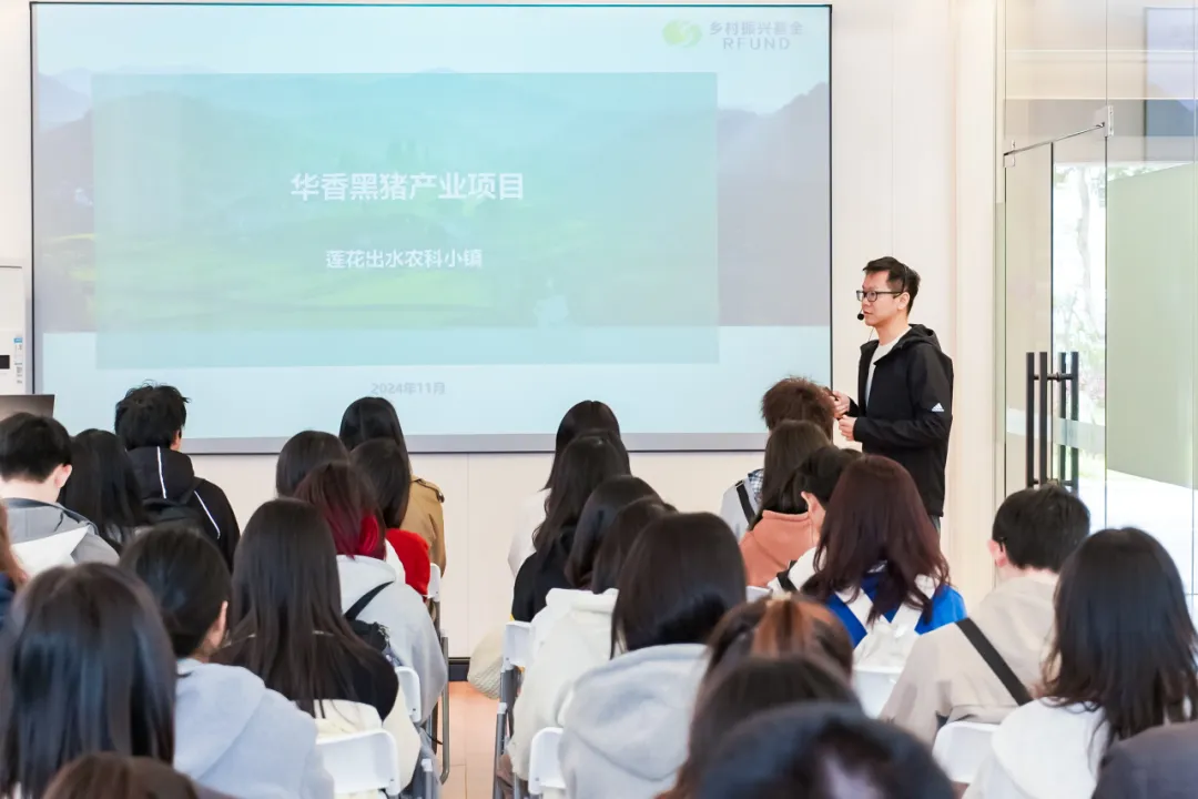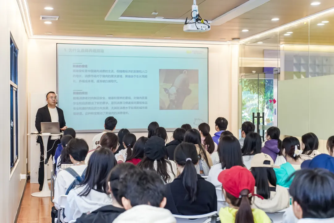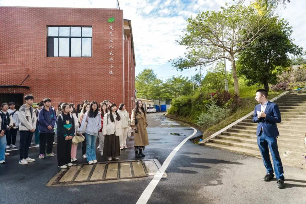 研学团实地参观黑猪养殖和黑米种植基地,了解了企业运用多种创新技术提升生产效率和产品质量的实践经验。莲花出水农科小镇生猪产业项目CEO黎炽明、黑米产学研项目CEO陈泓良为我们师生详细介绍了华香黑猪养殖和黑米种植的产业概况,全面阐释华香黑猪和黑小宝全谷黑米对品质与健康的追求。农科小镇充分体现了科技创新在农业领域的应用,在科技的帮助下,有效提高当地农业资源的产出量,显著提升了产品附加值。