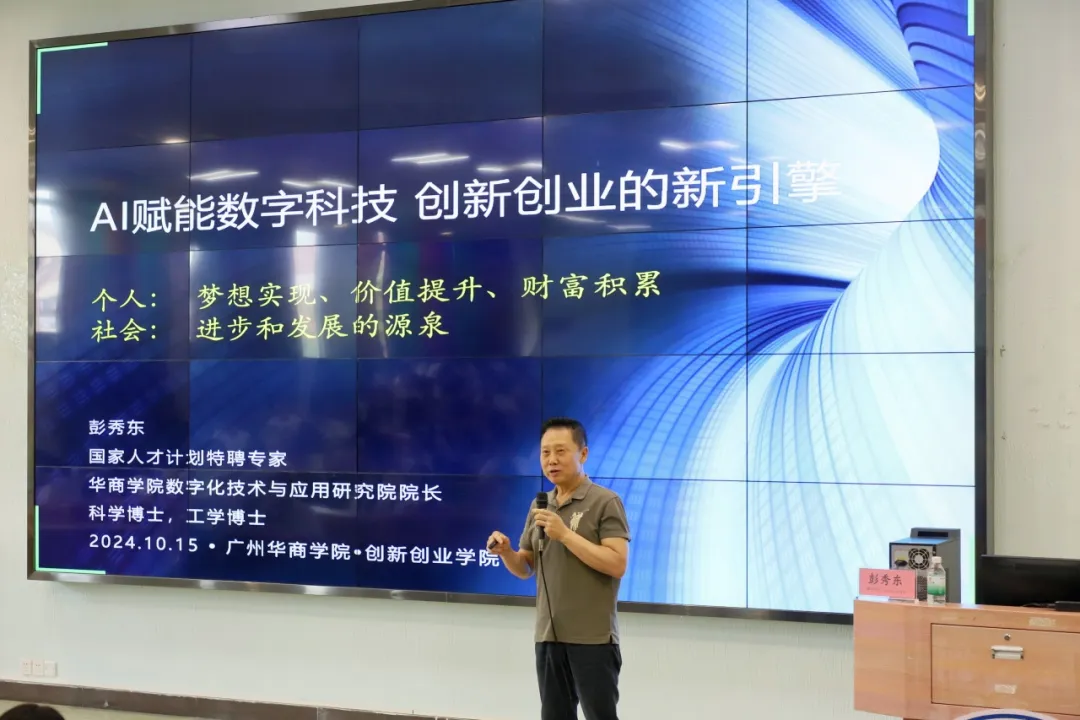 本次讲座的主讲人是国家级人才计划特聘专家、华商数字化技术与应用研究院院长彭秀东教授。莅临本次讲座的嘉宾有新伟德国际1946学生就业创业处宋元跃副处长、创新创业学院陈欢老师。