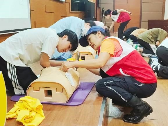 活动过程中,林婉莹讲师向同学们介绍中国红十字会“三救”“三献”的主要工作。随后,她展开急救互动环节,教导同学们面对无AED设备、环境嘈杂难以沟通、以及救援者自身紧张等不利条件时,如何冷静应对突发心脏骤停的挑战,鼓励学生们运用所学知识,如心肺复苏术(CPR)的基本步骤;同时,结合现场环境评估与心理调适技巧,引导同学们展开讨论。这一过程不仅加深了同学们对急救知识的理解和记忆,更激发了他们面对紧急情况时勇于担当、科学施救的社会责任感。