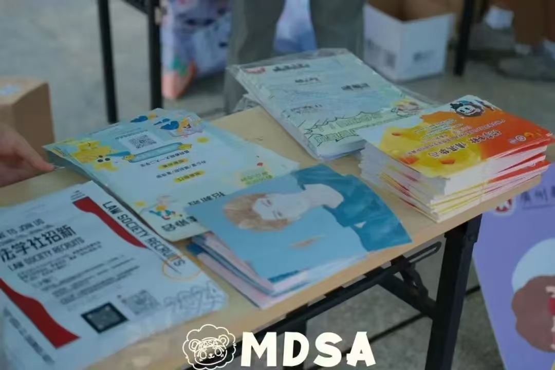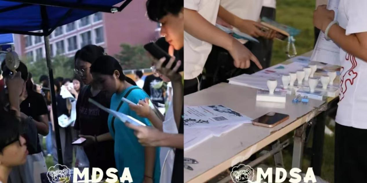 各式各样的社团展位如同一幅幅生动的画卷,展示我们学生社团的特色魅力、建设成果,吸引了众多学生来到活动现场。现场笑声、欢呼声此起彼伏,每一个社团的招新摊位都充满了活力和热情。