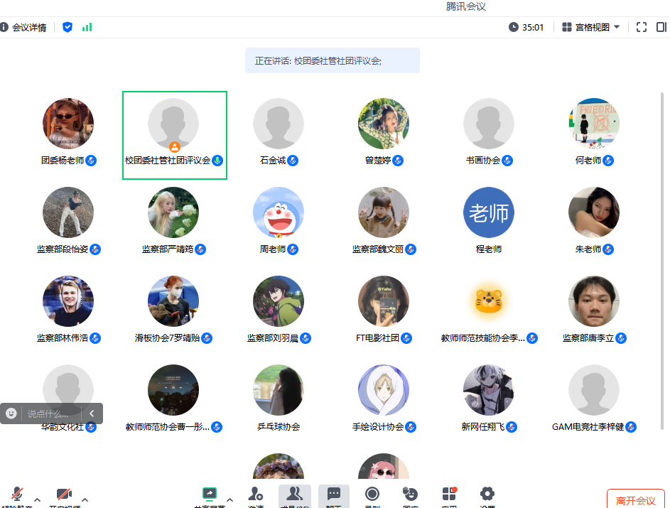 学生社团建设管理评议会是我们落实学生社团改革要求,提升学生社团建设管理水平的重要举措。本次评议会是各社团一学年建设成果的集中汇报,学生社团代表们分享社团管理中的收获与经验,交流探讨社团改革后新的发展思路,以及工作中遇到的实际困难和存在的问题。接下来,学校团委将继续在学校党委的领导下,更加聚焦立德树人这一根本任务,进一步推进我们学生社团规范化管理,打造社团建设的特色文化、品牌文化,促进校园文化繁荣、助力学生成长成才。