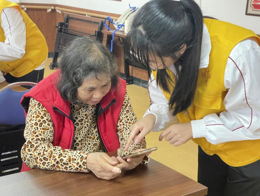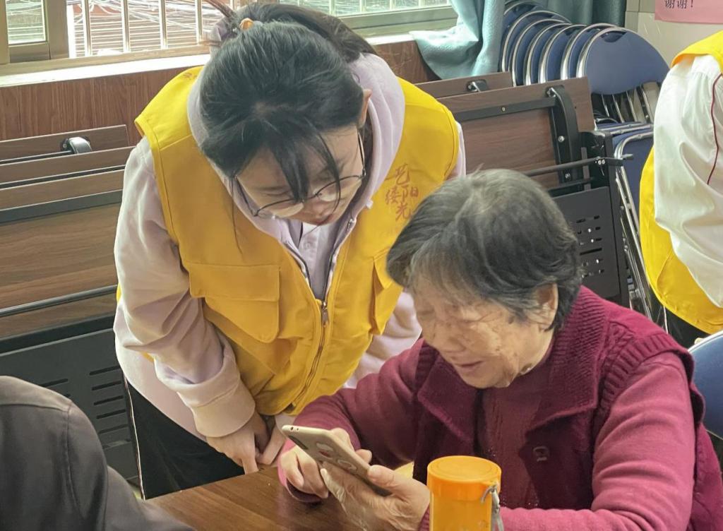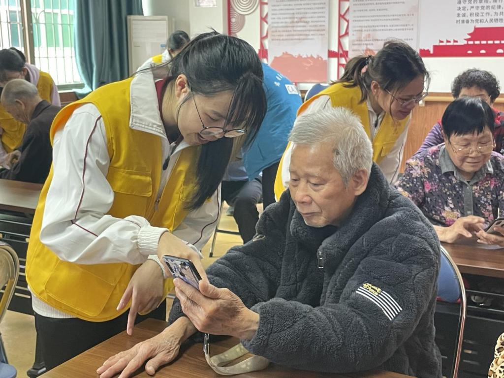 掌握智能手机应用技巧不仅需要掌握基础的理论知识,还应进行实际的操作训练。为更好地帮助长者们熟练掌握手机应用功能,志愿者们采取“一对一”的形式进行指导,详细讲解并解答老人提出的问题,让长者们感受到科技发展给生活带来的便利。在互动教学过程中,长者们脸上洋溢着满足和喜悦的笑容,志愿者们以实际行动传递了爱,同时收获了精神上的满足。