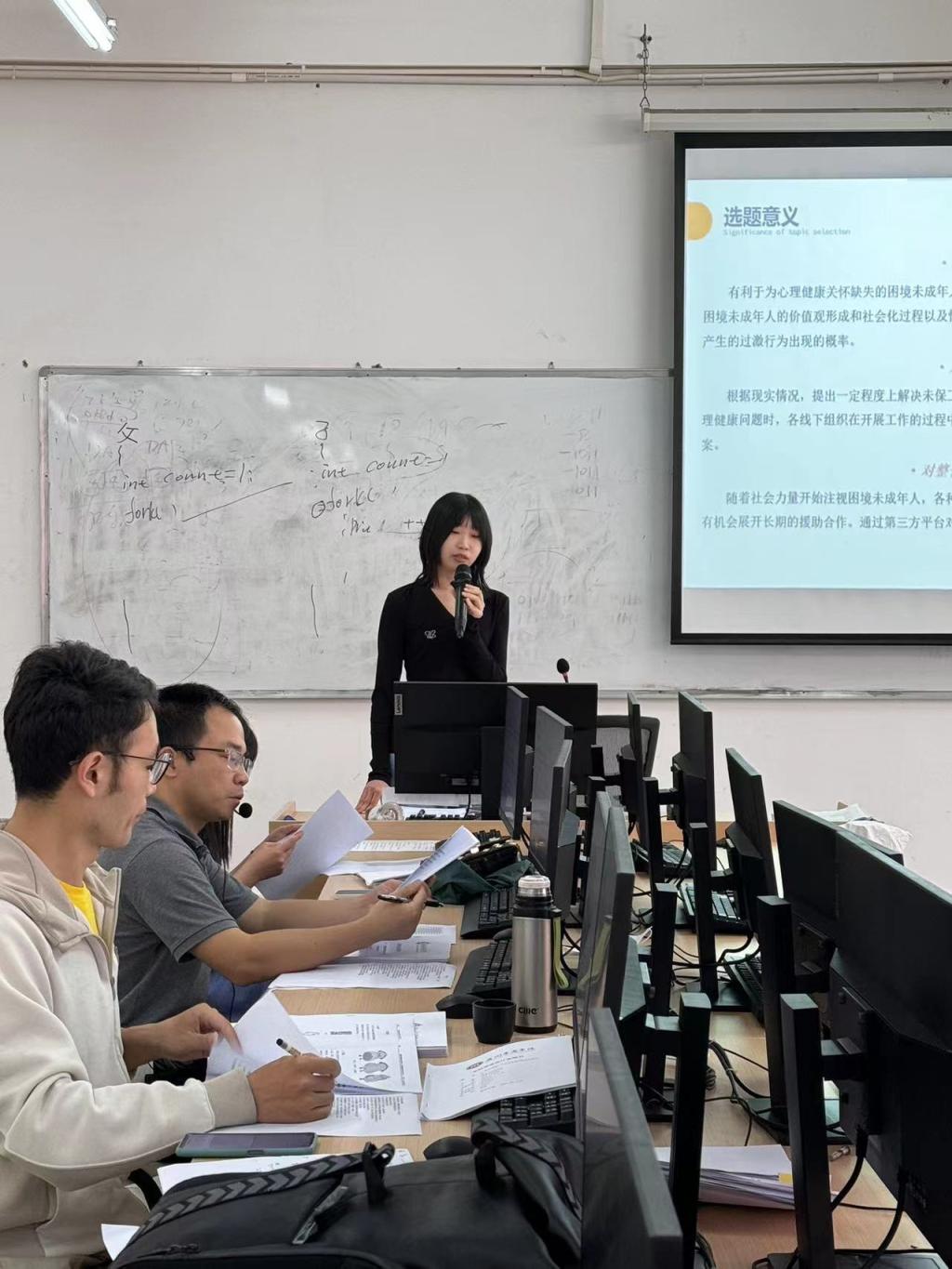 本次答辩会分为学生陈述和老师提问两个环节。在陈述环节,学生展示了毕业设计作品,并就毕业设计背景、意义、主体框架、亮点与创新点、内容生产、运营、推广、传播等方面进行阐述。在提问环节,老师们根据毕业设计作品、毕业设计说明书及陈述内容进行现场提问,指出毕设作品与毕设说明书在专业契合度、主体框架、标题与内容的一致性、新媒体产品设计、格式等方面的问题,并提出具体的修改建议。