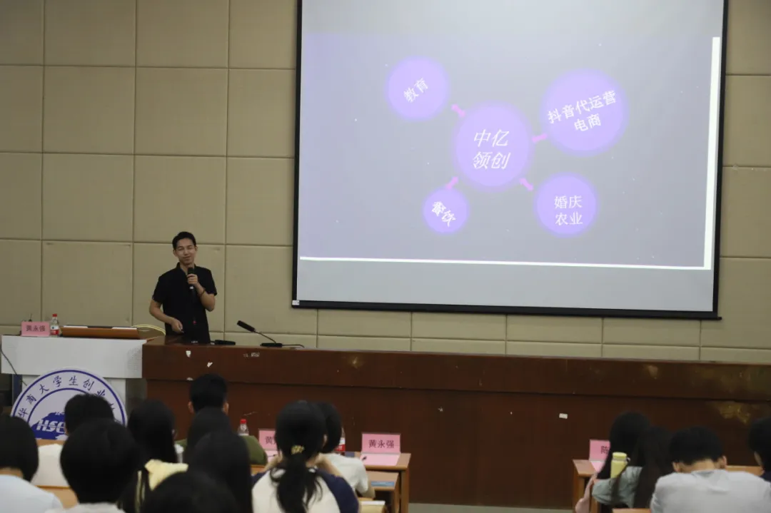 讲座伊始,黄永强先生从自己的创业经历出发,为同学们讲述了他从创业初期的摸索到如今的成功,以及创业过程中的种种挑战与收获。他的事迹不仅展示了创业者的坚韧和勇气,更为想创业的同学们提供了宝贵的经验。在谈到未来的创业方向时,黄永强先生强调了招商加盟和乡村振兴的重要性。他认为,随着国家对乡村振兴战略的不断推进,乡村教育振兴、乡村图书馆、走出乡村研学等领域将具有巨大的发展潜力。他鼓励创业者积极响应国家政策,深度参与乡村振兴,为乡村发展注入新的活力。