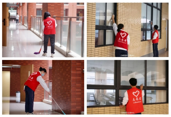 教室清扫——校园文明,你我共行。清扫卫生、擦去尘埃,迎接崭新的开始。志愿者们积极投入,耐心地清扫教室、教学楼等区域,做到“卫生无死角”,整个过程细致、有序。每一名志愿者都以实际行动共同为师生营造出一个干净、整洁、舒适的工作与学习环境,他们背后忙碌的身影,将“全心全意为同学服务”的理念根植于心,躬身实践。