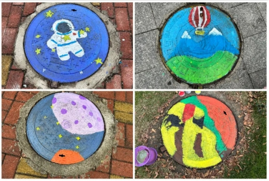 “井”上添花——绿美广东,青年先行。华商青年志愿者以井盖为画布,创作出一幅幅主题鲜明、生动有趣的彩绘作品。在太平村部分井盖区域,同学们巧思构图、用心调色、精心晕染,一笔一画尽显华商青年对艺术和环保对思考和热爱,提升华商学子的审美情趣、动手能力与创新创造力,充分展现华商青年良好的精神风貌。创意井盖彩绘作品成为一道独特的风景线,吸引众多师生、居民驻足欣赏。