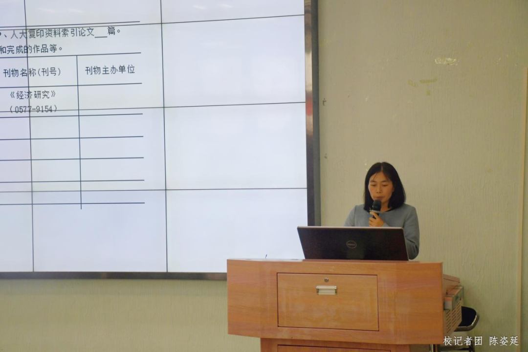 申报事项讲解环节,人事处旷美容、教务处陶丹艳、科研处孔海兰三位工作人员分别从基本信息、教学业绩情况、科研业绩情况等方面,通过举例说明、填写演示、案例展示等方式,对2023年职称申报材料填写要求及注意事项进行了详细讲解,帮助申报职称的教师进一步明晰申报要求,规范申报材料的填写,为顺利完成职称申报工作做充足的准备。