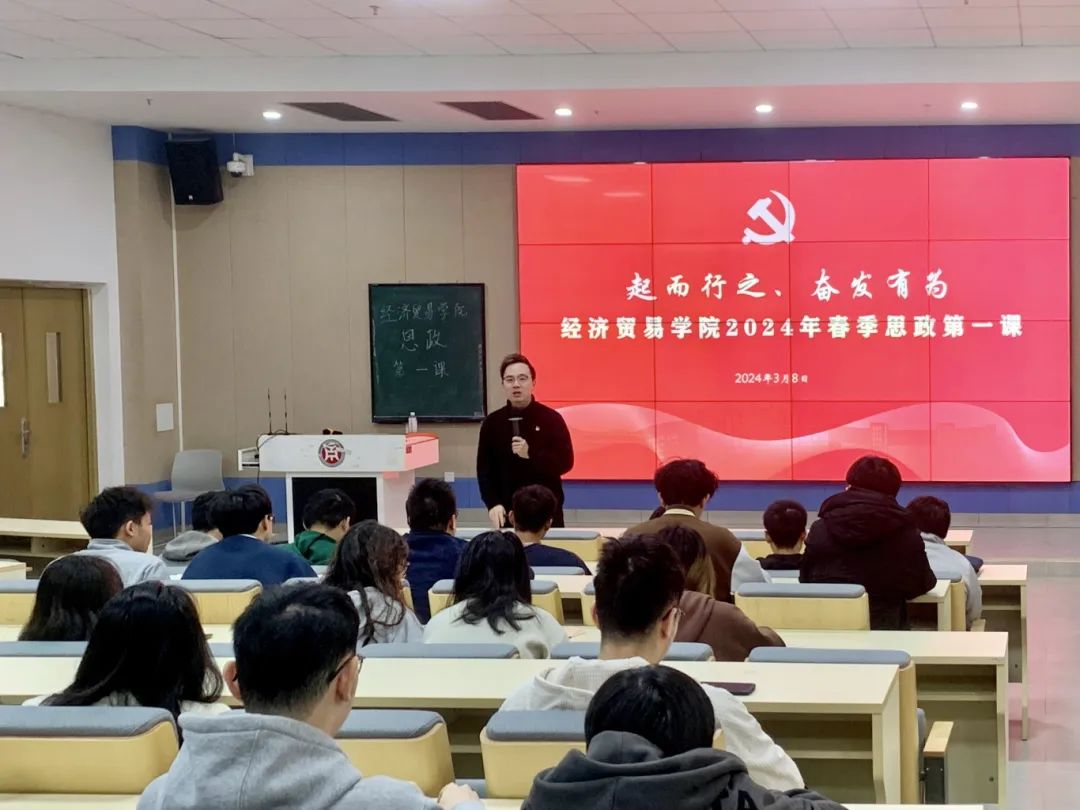 为深入学习贯彻习近平新时代中国特色社会主义思想,增进广大青年学生对党的创新理论的政治认同、思想认同、理论认同、情感认同,铸牢听党话、跟党走的思想根基,进一步引导学生将个人命运前途与实现中华民族伟大复兴的伟大征程紧密结合,新伟德国际1946经济贸易学院开展新学期“思政第一课”。
