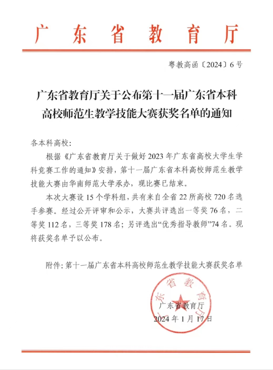 广东省本科高校师范生教学技能大赛是省内规模最大、影响最广的高水平师范生教学技能竞赛。我们学子和东莞理工学院、广州大学、华南师范大学、惠州学院、嘉应学院、岭南师范学院、韶关学院、韩山师范学院等高校学子同台竞技。据悉,大部分参赛选手都是以大四的学生为主,虽然我们本次选派的是大三学生,但是依然承受住了压力,展现了风采,获得了奖项。这里面既有学生积极努力的备战,指导教师的精心训练,更离不开学院领导、老师的高度重视和全力支持。