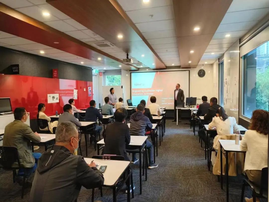在交流研讨环节中,参训骨干教师与邵文教授、Danford高等教育学院的创始院长Esposto进行专题交流。他们重点探讨了澳洲高等教育的办学模式以及高等教育的发展趋势、挑战及应对策略。