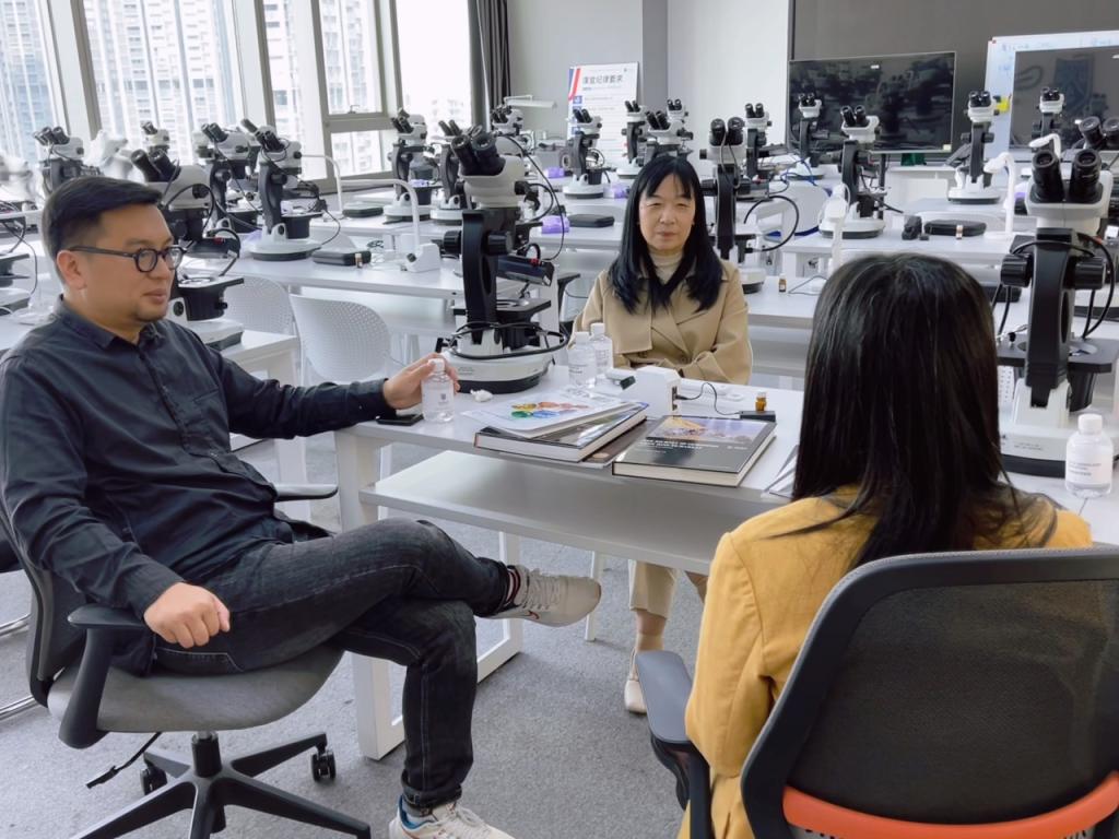 3月20日,新伟德国际1946珠宝学院朱晓红院长、张宪法副院长、专任教师曹旭峰老师一行前往深圳GUILD吉尔德宝石教育学院,就珠宝培训相关内容展开交流会谈。
