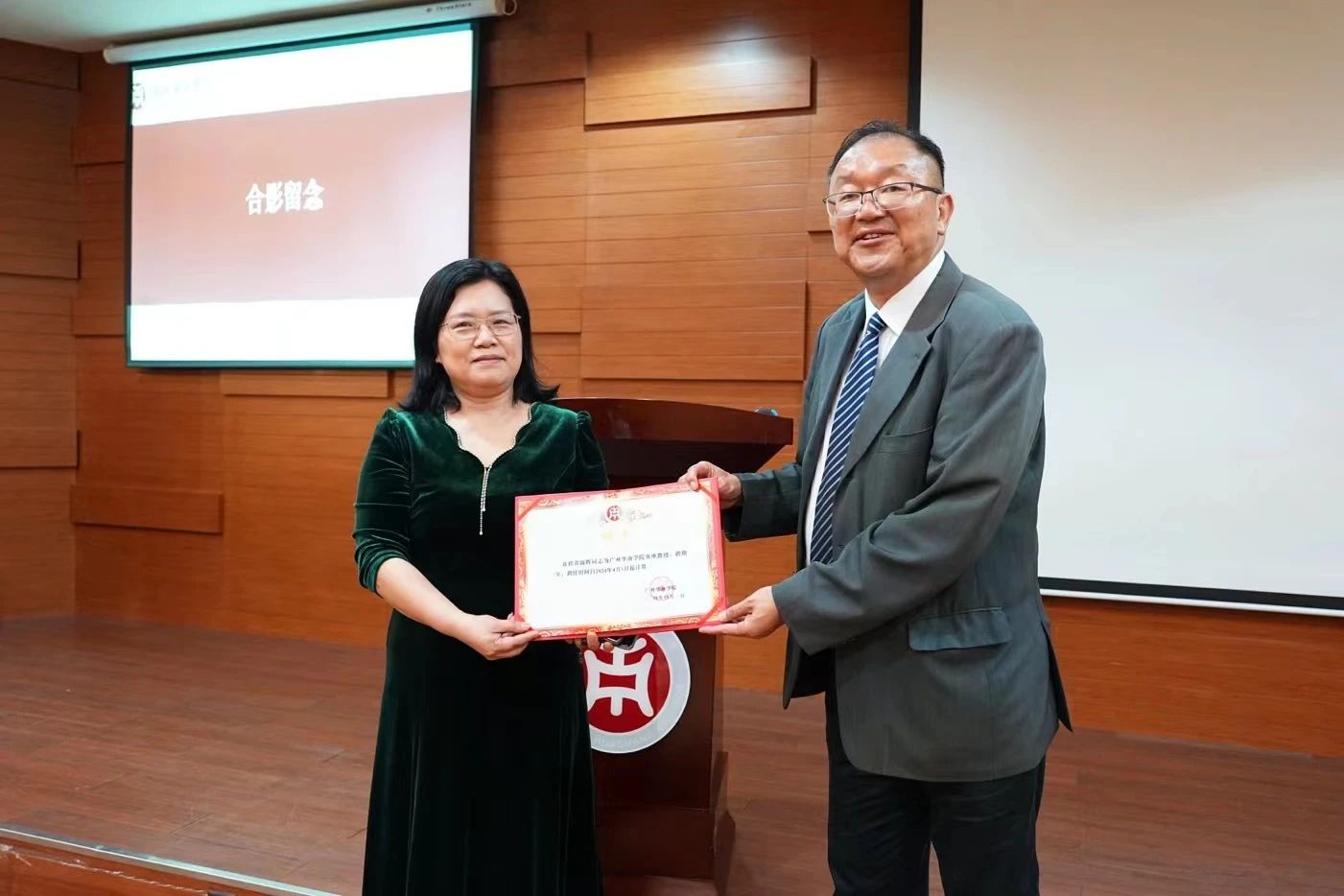 在与会人员的共同见证下,党委书记陈玉欢代表学校为黄锦辉教授颁发客座教授聘书。陈书记表示,黄教授的到来为学校高质量发展注入了新的活力,必将推动华商学院在数智化体系构建及专业人才培养等方面的工作迈上新的台阶。希望通过与黄教授的合作,大力提升我们的教学、科研和人才培养水平。