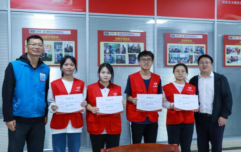 颁发感谢状及授牌。慈爱嘉养老服务中心党支部徐新年书记、校团委陈刚书记为我们优秀志愿者代表颁发感谢状。慈爱嘉养老服务中心党支部徐新年书记、荔城街综合养老服务中心何丽珊主任为我们“智慧助老”项目指导老师夏仲颁发感谢状。
