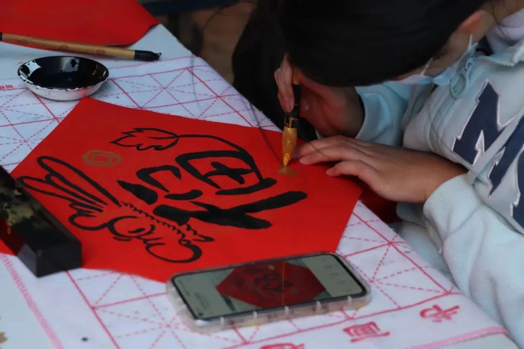 活动现场,我们书画协会的同学展纸援笔、挥毫泼墨,现场书写一幅幅寓意吉祥的春联。一个个饱含神韵的“福”字跃然纸上,散发淡淡墨香,传递出浓浓年味和温暖祝福,切实为全校师生送去新春问候。一笔一划,蕴含浓郁年味;一撇一捺,尽是古字韵味;一提一顿,凝聚书写功力。现场收到对联的师生对此赞不绝口。