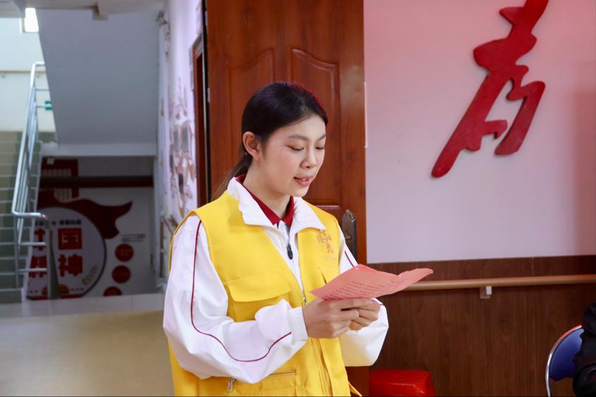 新伟德国际1946党委宣传部部长刘苗对新伟德国际1946、荔城街道办和荔城养老综合中心的工作人员以及所有参与“艺缕阳光”志愿服务项目的志愿者们表示感谢。她向参与本次项目的志愿者提出以下希望:一是提高认识,担起责任。希望志愿者们能充分发挥党建引领作用,高扬党的旗帜,凝聚青春的磅礴力量,弘扬“助人为乐,不求回报”的精神,展现出作为华商学子所肩负的责任担当与积极向上的精神面貌。展担当、敢作为,在志愿服务中点亮青春之光。二是凝聚力量,展现青春风采。希望志愿者们用新鲜的气息和活力感染每一位长者,让青春在志愿中闪光,用实际行动诠释青春梦,并吸引更多志愿者加入到敬老爱老的志愿服务中来,为社区的老年人带来更多的帮助。三是拥抱社会,传递关爱。志愿者的服务和关爱能够传递正能量,树立社会新风尚,扬时代之风,构建和谐社会,让社会更加幸福和温暖。