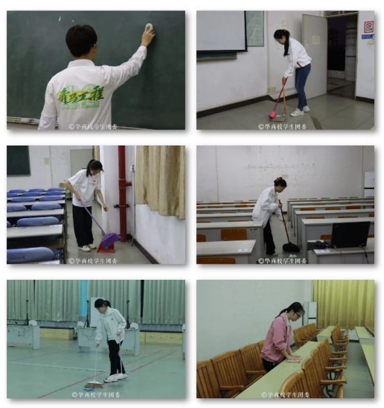 凝聚青年力量,助力文明校园。在本次的志愿活动中,学员们分工明确、互相配合,将地面垃圾扫成堆,擦拭桌面上的笔墨和污渍,清理桌柜下的垃圾,检查教学设备,细致地清洁教学楼的每一处卫生,不放过任何一处卫生死角。