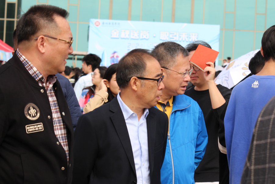 学校党委陈玉欢书记、郭银华执行校长、支戈壁副校长、廖伊曼副校长、王锦秀副校长等党政领导班子,各二级学院院长、学工领导、相关职能部门负责人及教师代表到场或者线上指导招聘会工作,深入招聘会现场,与用人单位代表深入交流,了解用人单位的招聘需求和岗位设置情况,与前来应聘的毕业生交流,了解同学们的个人规划和就业方向。