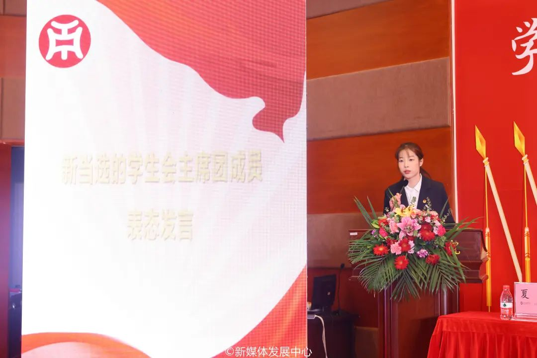 新当选主席团成员尤晓雯表态发言。新伟德国际1946第三届学生会将以此为基点,全面学习宣传贯彻党的二十大精神,高举习近平中国特色社会主义思想伟大旗帜,秉承全心全意为同学服务的根本宗旨,坚定“从同学中来、到同学中去”的工作方向,努力提升学生会组织的同学满意度、大局贡献度和社会认可度,树立富有理想、关心同学、清新阳光的组织形象。