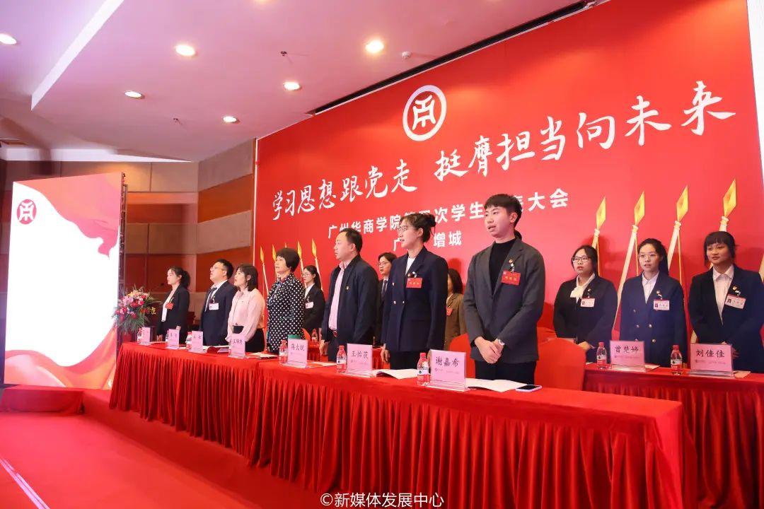 点燃青春火炬,书写未来篇章。高举团旗跟党走,唱响青春梦之歌。为深入学习贯彻党的二十大精神,全面贯彻落实全国学联二十七大工作部署,持续深化我们学生会组织改革,引领华商青年学子在为实现中华民族伟大复兴中国梦的不懈奋斗中谱写青春华章,在学校党委、省学联、学校各职能部门、各学院党委的关心与支持下,12月2日,新伟德国际1946第三次学生代表大会顺利召开。本次大会广州校区设主会场、肇庆校区设分会场,两校区全程连线直播。