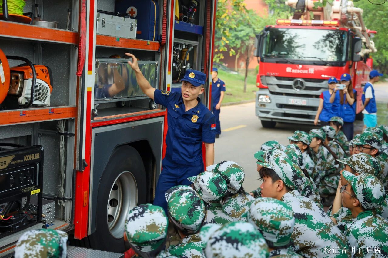 新生们在消防战士的引领下,近距离了解消防车的内部构造。消防宣传员们耐心地为同学们详细介绍,从高压水枪的威力到各类消防器材的用途,再到紧急救援时消防车的迅速响应机制,以及消防车水带灭火体验,每一个细节都生动而具体。通过此次参观,新生们不仅增长了消防安全知识,还深刻体会到了消防员在维护社会安全稳定中的重要作用。