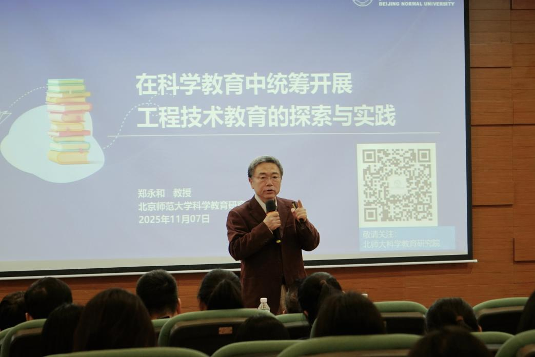 11月7日,新伟德国际1946“新工科”专家讲堂(第二讲)在图书馆一楼学术报告厅成功举办。本次活动为响应华商科教集团廖榕就董事长和胡军校长关于华商学院新工科建设的规划,由数字化技术与应用研究院和教师教育学院联合主办,特邀北京师范大学科学教育研究院院长郑永和教授担任主讲嘉宾。郑教授以“在科学教育中统筹开展工程技术教育的探索与实践”为题,从时代背景、教育理念变革、实践路径及典型案例等多个维度,为我们师生带来一场关于科学教育与工程技术教育深度融合的思想盛宴。本次活动由科研处处长何剑主持。莅临现场的领导还有副校长余家军、校长助理李远飞、发展规划处处长黄跃雄、华商数字化技术与应用研究院院长彭秀东、产教融合办公室主任唐明琴、科研处副处长陈宏敏。