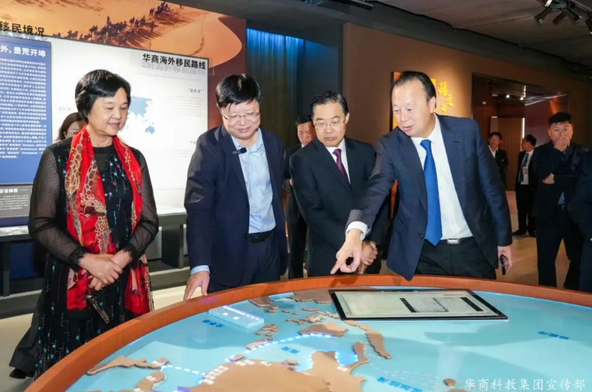 陈玉欢书记强调,会展中心更是华商文脉的精神高地。全国高校唯一一座以“世界华商”为主题的大型世界华商博览馆和即将落成的党建馆、校史馆会在不久的将来,在此相融共生。世界华商博览馆以“天下华商、华商天下”为主线,生动系统地呈现华商群体数百年来跨越山海、纵横天下的奋斗史诗;党建馆承载红色基因,铭刻初心使命,筑牢信仰之基;校史馆沉淀办学足迹,彰显育人心传,辉映时代担当。三馆联动形成了“历史、信仰、传承”三位一体的文化矩阵,构筑起“馆课一体、知行合一”的育人生态,将为华商培养具有家国情怀、全球视野、专业素养的新时代青年英才提供深厚的精神滋养与坚实的文化支撑。