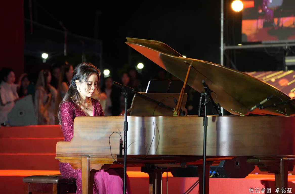 校友李家城带来两首歌曲的串烧独唱,《HOME SWEET HOME》的温情旋律与《WE LIKE 2 PARTY》的欢快节奏形成鲜明对比,他用富有感染力的歌声营造出轻松愉悦的氛围,展现了青春表达的多元与鲜活。