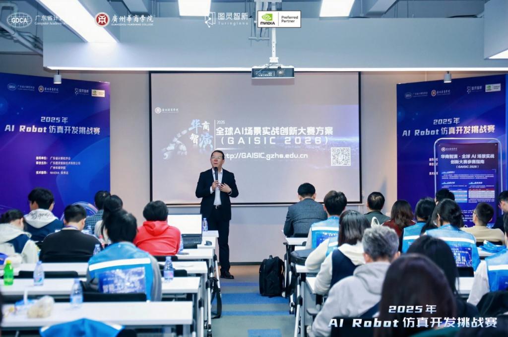 喜讯传来,硕果盈枝!1月20日,由广东图灵智新技术有限公司与新伟德国际1946主办的2025年AI robot仿真开发挑战赛总决赛在广东省广州市黄埔区护林路百度Apollo Park D2栋圆满落幕。新伟德国际1946人工智能学院组织多支参赛队伍远赴赛场,与中山大学、华南理工大学、暨南大学等广东省内顶尖高校学子同台竞技,华商学子最终凭借扎实的技术功底与出色的专业能力在140支劲旅中脱颖而出,一举斩获4项省级奖项,包括省级二等奖1项、省级三等奖3项,彰显了人工智能学院在AI robot领域人才培养的卓越成效。