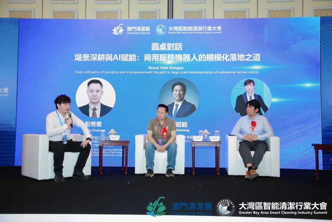 随后的圆桌对话以“场景深耕与AI赋能:商用服务机器人的规模化落地之道”为主题,彭秀东教授与清洁行业技术精英,围绕商用清洁机器人场景适配、技术突破、成本控制及规模化落地等核心问题展开深入探讨。他们一致认为,AI赋能清洁行业的核心与关键在于场景深耕,只有贴合清洁行业的实际作业场景,解决实际问题的技术与设备,才能真正实现商业化应用与规模化发展。