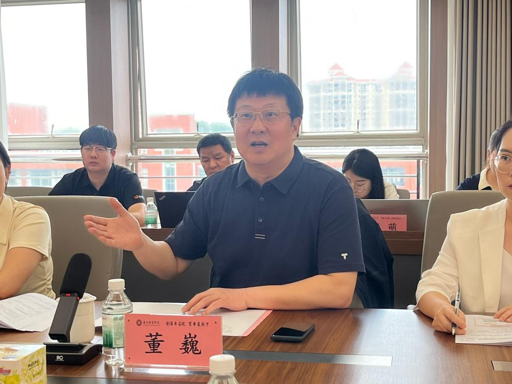 4月14日,中教智网董事长、中国教育在线常务副总编辑董巍一行来访华商,并就“学生未来发展中心”建设方案展开研讨交流。学校校长胡军、副校长余家军、副校长许娜、校长助理黄伟新、黄跃雄以及相关职能部门负责人出席会议。会议由副校长许娜主持。