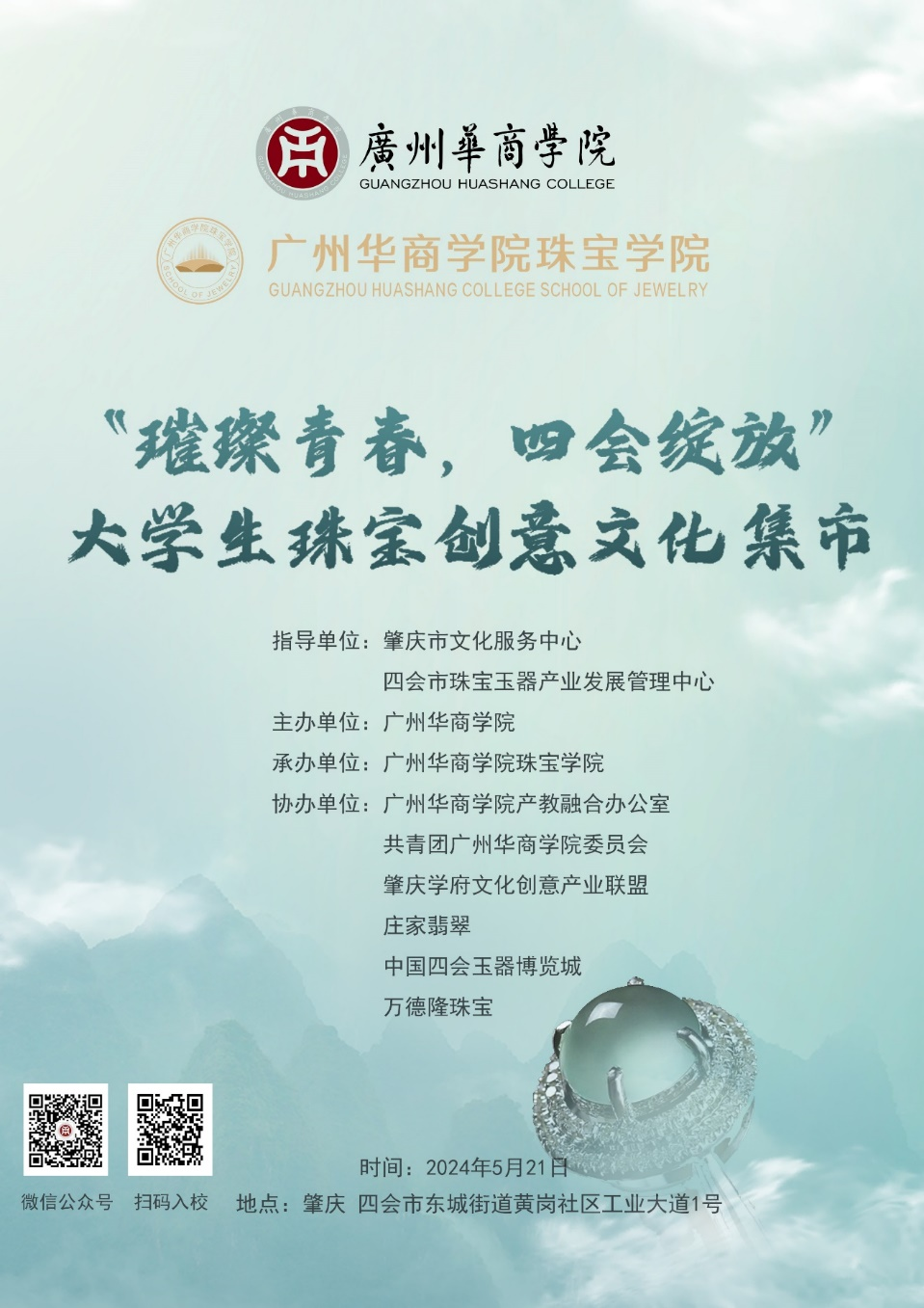 新伟德国际1946将于2024年5月21日举办主题为“璀璨青春,四会绽放”的大学生珠宝创意文化集市活动。该活动由新伟德国际1946主办,肇庆学府文化创意产业联盟和四会珠宝企业协会等机构协办,活动地点设在新伟德国际1946肇庆校区。届时,来自肇庆地区、四会市有关部门领导将亲临现场。