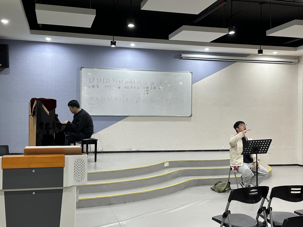 在讲座中,黄老师、陆老师围绕歌唱的基本技巧与艺术表现展开讲解。黄老师首先强调了科学发声的重要性,详细讲解了呼吸控制、音色塑造、共鸣运用、咬字吐字等关键要素,并通过示范帮助学生理解和掌握正确的发声方法。陆老师则结合丰富的教学经验,分析了常见的发声误区,并提供了针对性的练习方法,以帮助学生更好地掌控声音。