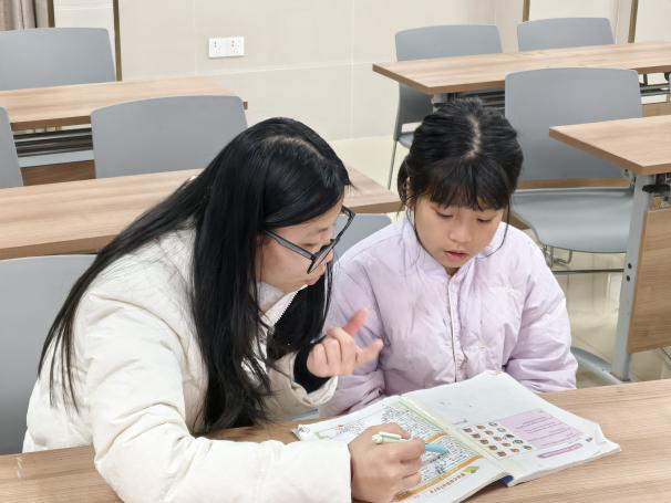 在作业辅导环节,志愿者们针对同学们在英语作业中所遇到的语法难点、词汇拼写等问题进行细致讲解。