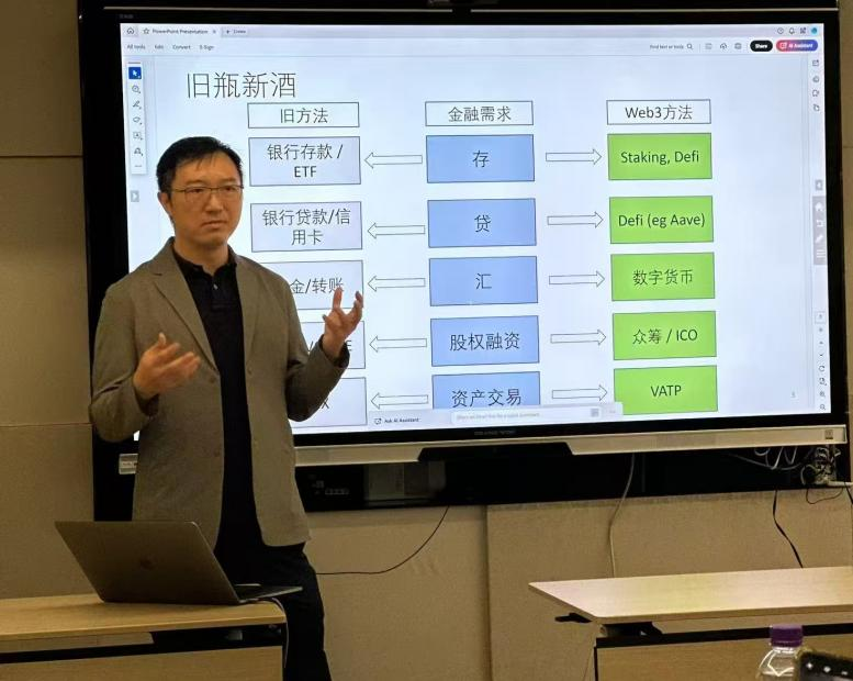 李国樑先生作为Banking Circle大中华区总经理、香港金融科技行业协会创始人及香港理工大学Web3实验室联席主任,在分享中系统阐述了国际金融行业的三大核心趋势:首先,随着全球监管框架的逐步完善,区块链与Web3正进入规范化发展阶段,其中稳定币作为跨境支付的新型工具备受关注,而香港凭借其独特的政策优势成为数字金融创新的重要试验田;其次,AI技术推动金融行业迈入4.0时代,通过智能代理重构商业决策与支付场景,金融服务入口从传统人工操作转向自动化与智能化,这一变革也为教育领域的案例教学与实践研究提供了新的视角;最后,他深刻指出,所谓“去中心化”本质上是利益分配格局的重塑过程,金融机构与科技企业正在新兴赛道展开话语权争夺,这一趋势对金融人才的培养提出了更高要求,亟需既懂技术又通晓金融本质的复合型人才。