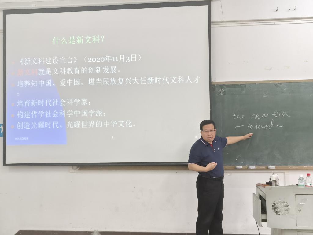 武波教授的讲解深入浅出,不仅加深了同学们对翻译职业复杂性的理解,更为同学们未来的学习路径和职业发展提供了清晰的指导。他鼓励同学们要积极拥抱变化,不断学习新知,以适应翻译行业不断演进的需求。他提醒同学们要保持对翻译工作的热情和对语言的敏感度,因为这将是同学们职业生涯中不可或缺的资产,同时他希望同学们坚定文化自信,在文明交流互鉴中坚守中华文化立场,讲好中国故事,传播好中国声音。