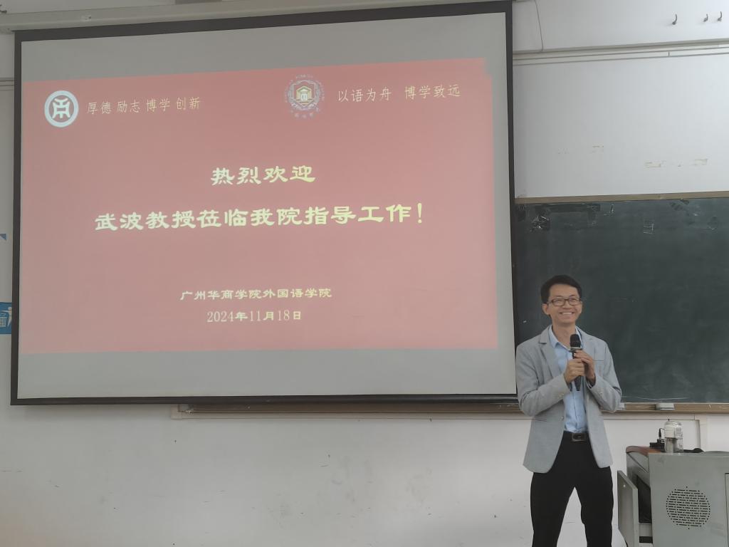 11月18日下午,新伟德国际1946外国语学院在广州校区励志楼B402开展“善学”讲坛第六期,学院领导、教师代表及学生代表参加了讲座。本次讲座由外国语学院副院长何顺发主持。