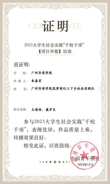 2024年,王海传教授指导“筑梦前行”社会实践团队以“科教下乡,助力白垢振兴”为主题,于5月、7月、9月在广东省肇庆市白垢镇开展志愿服务活动。活动内容共有6项:支教、墙绘、党课宣讲、公益捐赠、联谊助农、回访留守老人等。其中,支教受教的小学生达86人,支教时长为15天。团队活动事迹获得南方日报、西江日报、封开发布、封开县融媒体中心、封开县融媒体中心视频号、封开共青团、网易新闻、大学生云报等传媒广泛报道。南方日报对其活动事迹进行展示,展示数据及评价为:累计阅读量23000+,公众号推文阅读量8900+,抖音号视频播放量44000+,微信视频号播放量10000+,累计点赞量5700+;此次实践活动为白垢镇的教育、乡村风貌、农业发展和文化宣传带来积极影响,展现了青年学子助力乡村振兴的担当与作为。日前,王海传教授获评2024年新伟德国际1946暑期社会实践活动“优秀指导老师”称号,所指导的团队获评新伟德国际1946“优秀团队”称号,实践队队长朱嘉宜、队员吴曦获评“优秀个人”称号;团队作品入选中国青年报社2024年“千校千项”工程(全校5项作品入选)。
