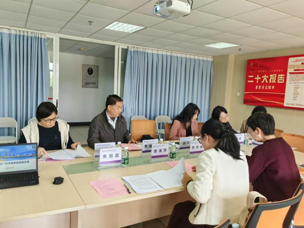 广州城市理工学院经济学院黄瑞新副院长、国际经济与贸易教研室副主任徐岑、专任教师徐苗、黄菲菲以及经济与统计专任教师邓雨婷,热情接待了韩丽姝教授一行。