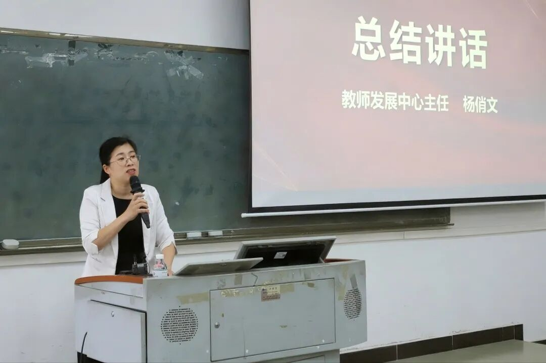 培训最后,教师发展中心杨俏文主任作总结讲话。她表示,本次培训内容深入浅出,案例鲜活生动,发人深省。她强调,陈教授所阐释的教育家精神与师德要求,是每一位教育工作者的行动指南。面对新时代新征程对教育提出的更高要求,全体教师必须时刻牢记为党育人、为国育才的初心使命,深刻认识到师德师风建设不是一朝一夕之功,而是需要持之以恒、久久为功的终身课题。希望各位教师将本次培训的所学、所感、所悟切实转化为推动工作的强大动力和自觉行动,不仅要成为专业知识的传授者,更要努力成为学生品格锤炼、知识学习、创新思维、奉献祖国的引路人。