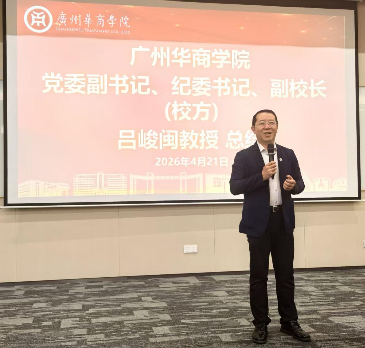 副校长吕峻闽作总结致辞。他回顾了各位嘉宾的精彩发言,并强调“无AI不华商,无数据不AI”。新伟德国际1946的微专业应时而生,我们与企业的合作顺势而为,期望同学们趁势而上。他勉励大家作为“黄埔一期”的开拓者,为粤港澳大湾区数字经济发展贡献华商力量。