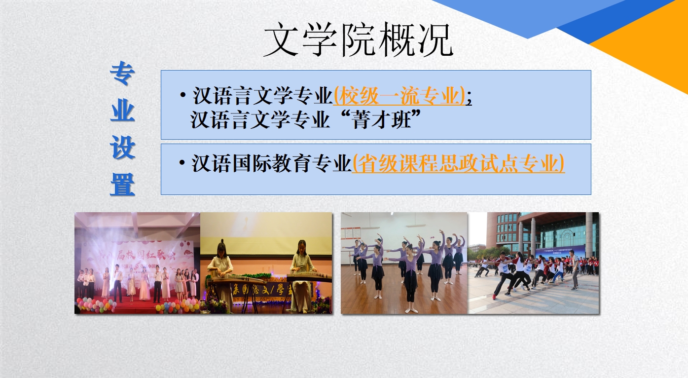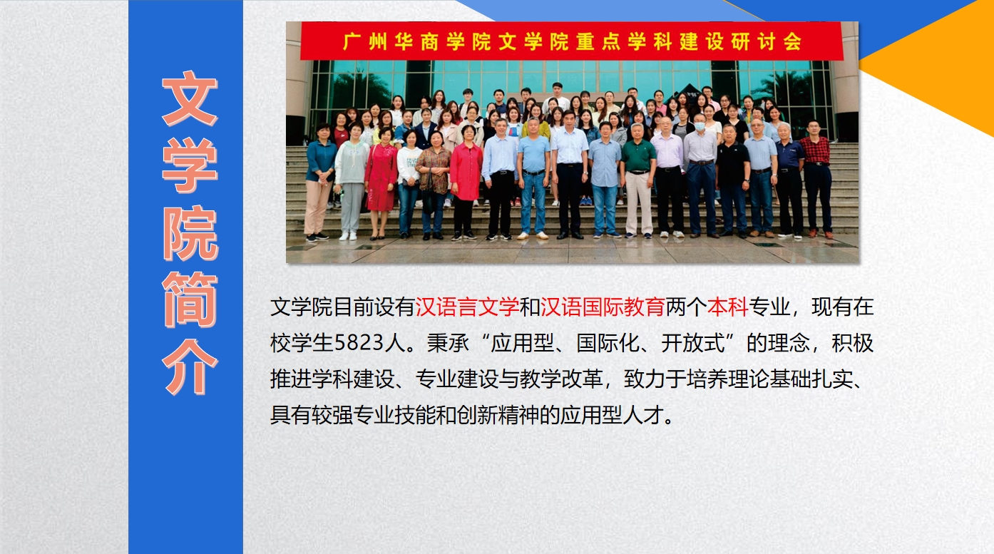 伟的国际1946bv官网目前设有汉语言文学和汉语国际教育两个本科专业,现有在校学生5823人。汉语言文学专业为校级一流专业,汉语国际教育专业为校级课程思政试点专业,中国语言文学学科为校级重点建设学科,语言文学研究院为校级研究院,中国古代文学教研室为省级教研室;现有国家社科基金项目2项,教育部全国高校古籍整理研究项目1项,省级教科研项目16项,省级一流课程2门,校级在研教科研项目41项。